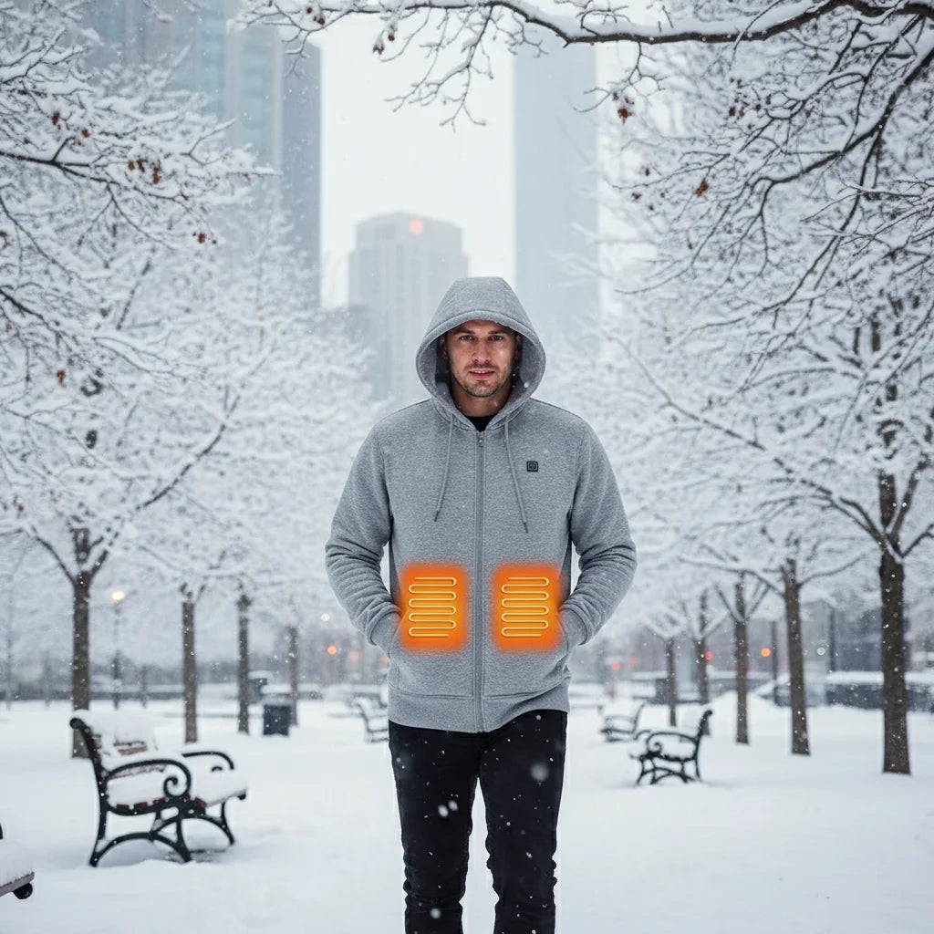 Don't let the cold stop your adventure. Our heated hoodie wraps you in instant warmth, powered by USB. Perfect for exploring, camping, or just beating the freeze in style.